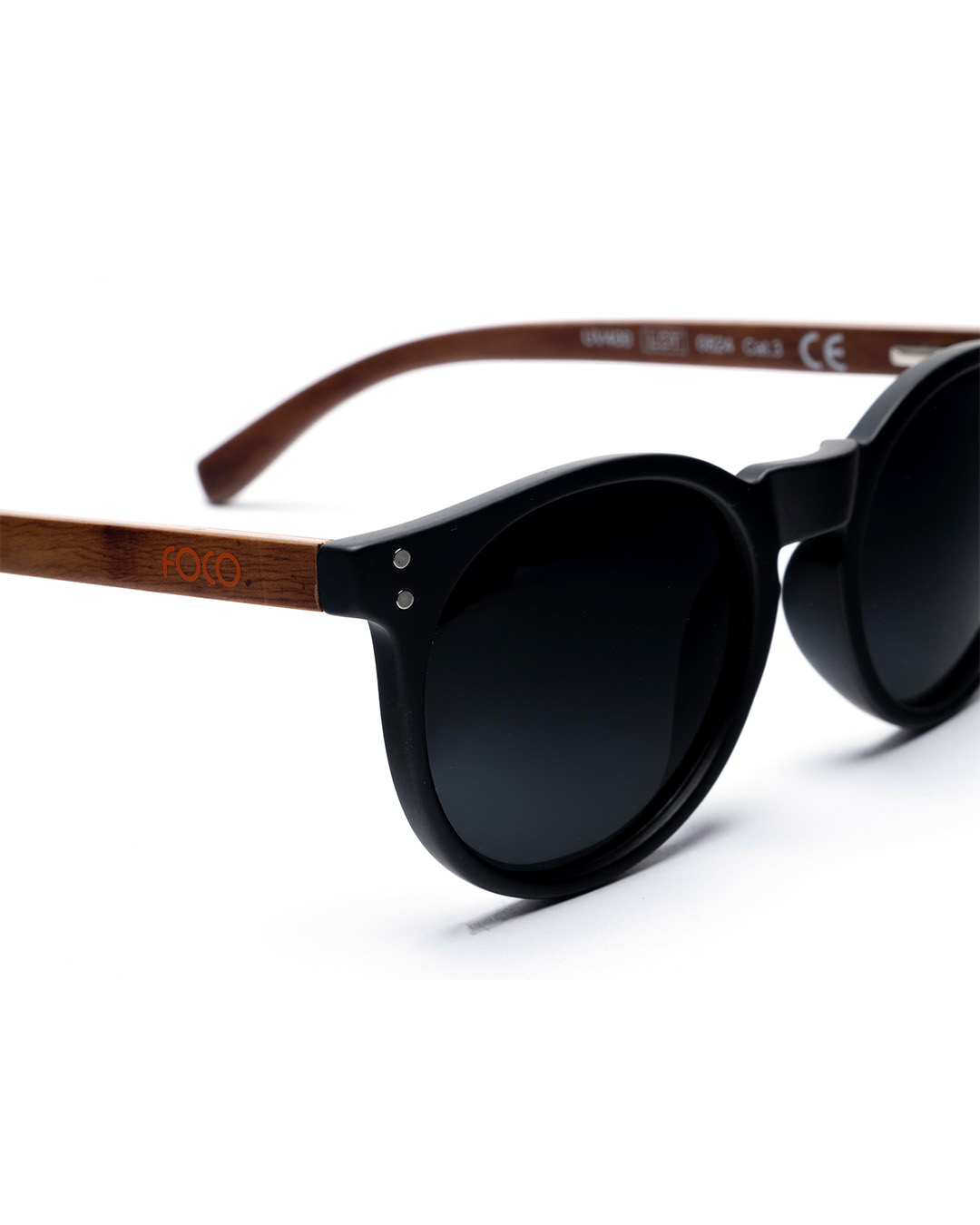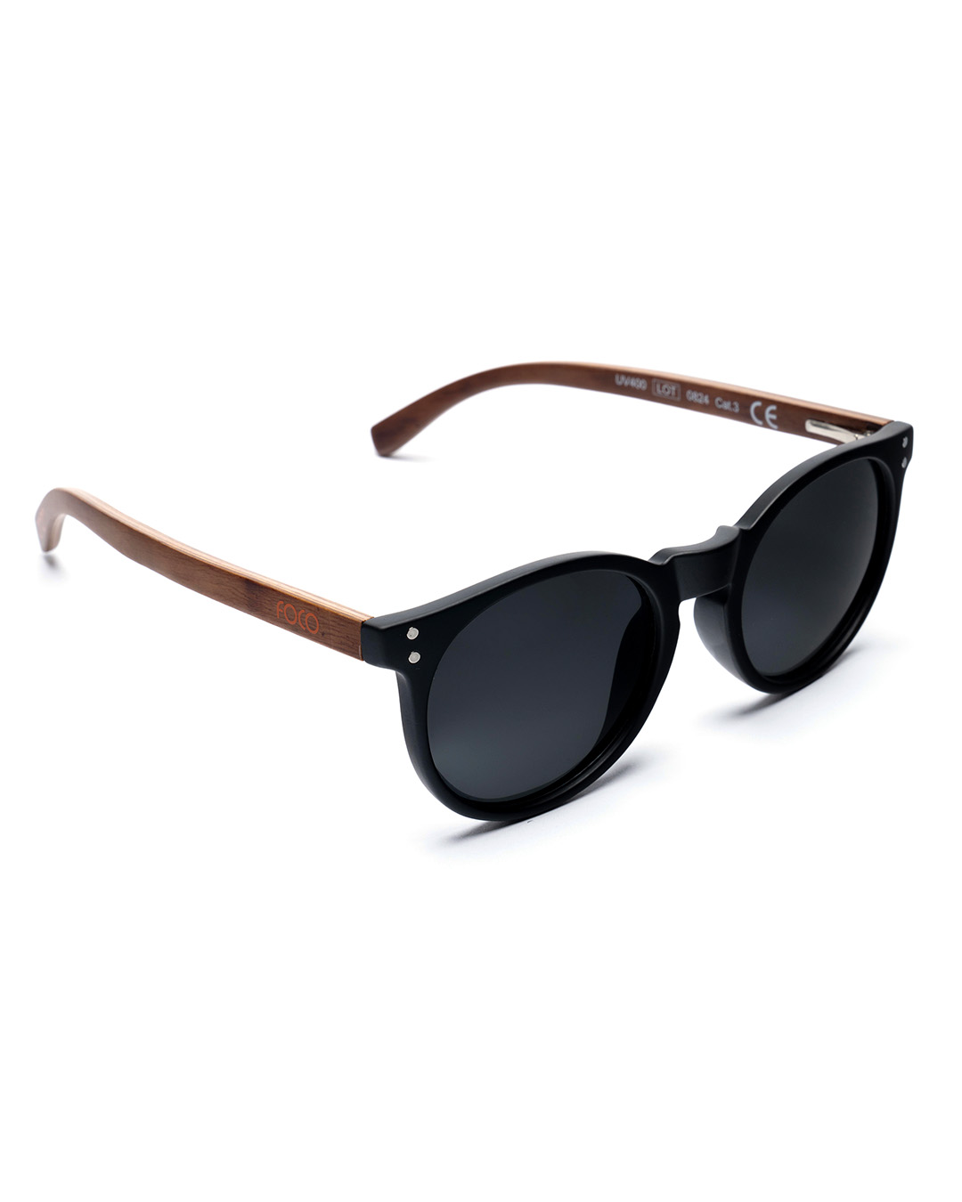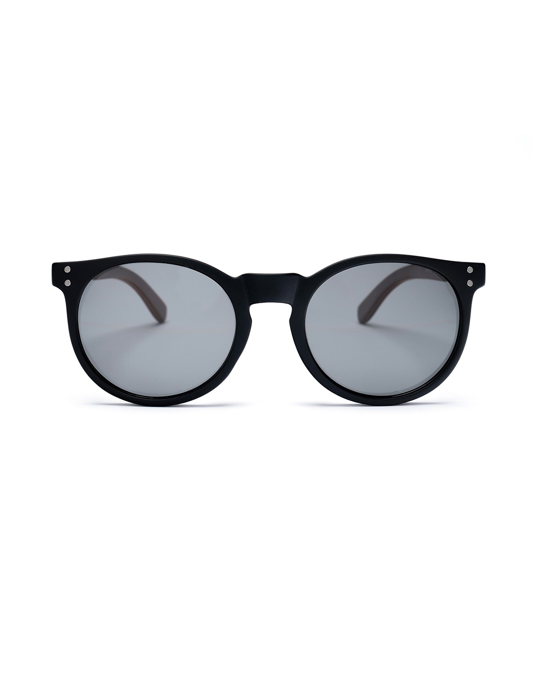 Unisex retro-inspired rounded frame in matte finish with solid walnut wood temples. Ultra-thin and lightweight polarized organic lenses.