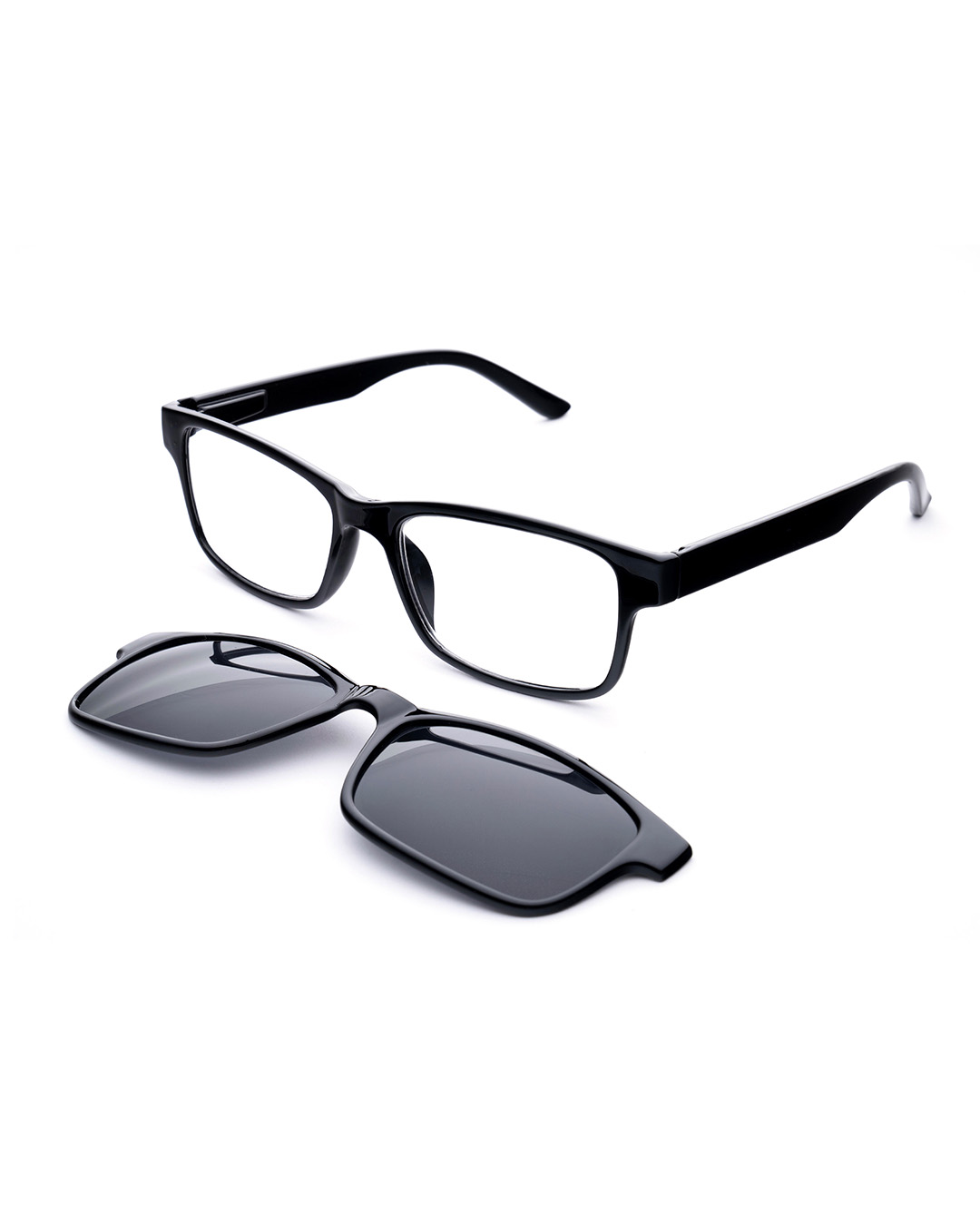 Gafas de lectura unisex de forma rectangular realizadas en plástico reciclado, ecológico y ultra ligero. Dos gafas en una, pues viene con una montura solar magnética (material no reciclado).