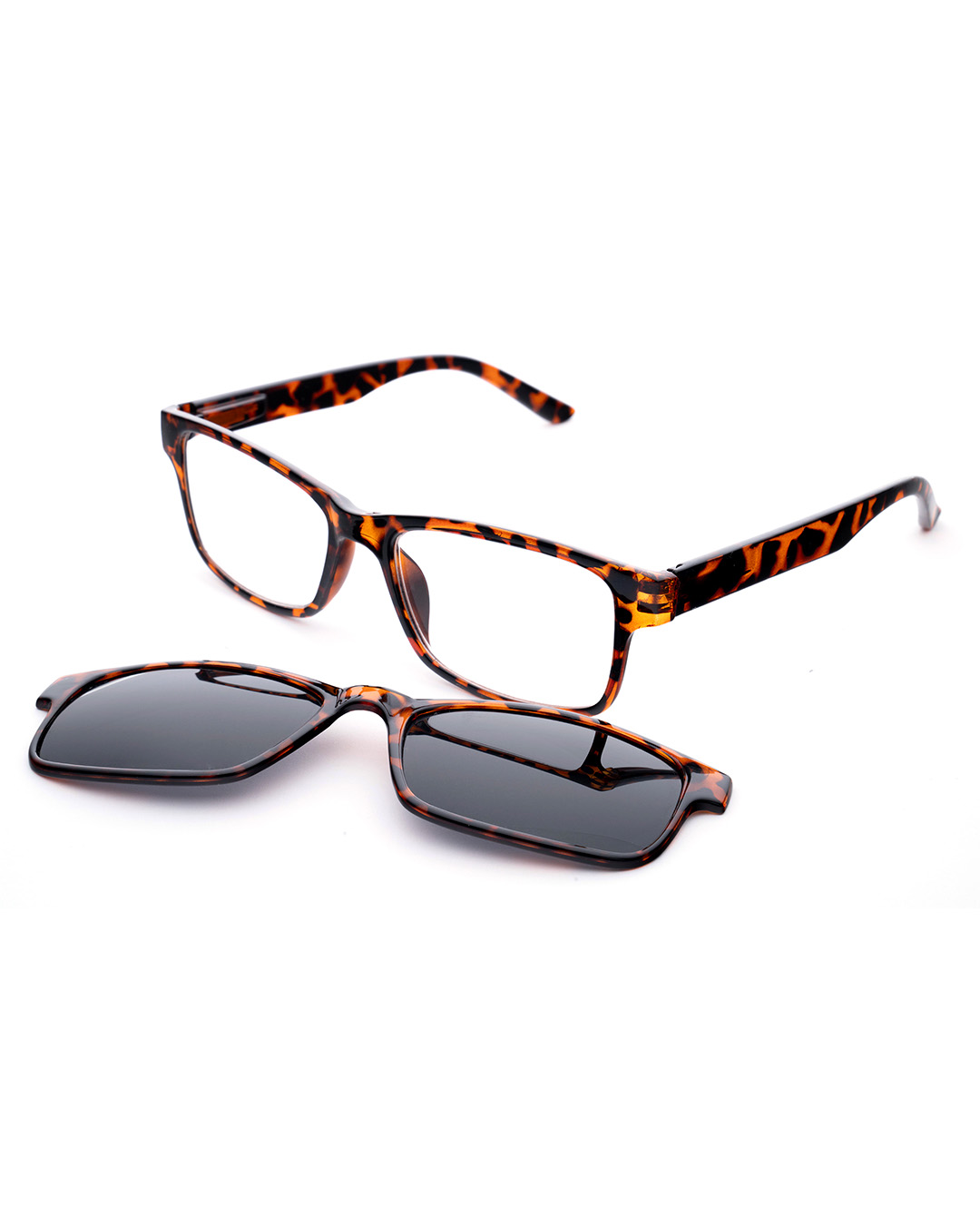 Gafas de lectura rectangulares unisex fabricadas en plástico reciclado, ecológicas y ultraligeras. Dos gafas en una, ya que incluyen una montura magnética para el sol (material no reciclado). Protección 100 % contra los rayos UVA/UVB · Filtro UV400 · Categoría 3. Disponibles en 2 colores.